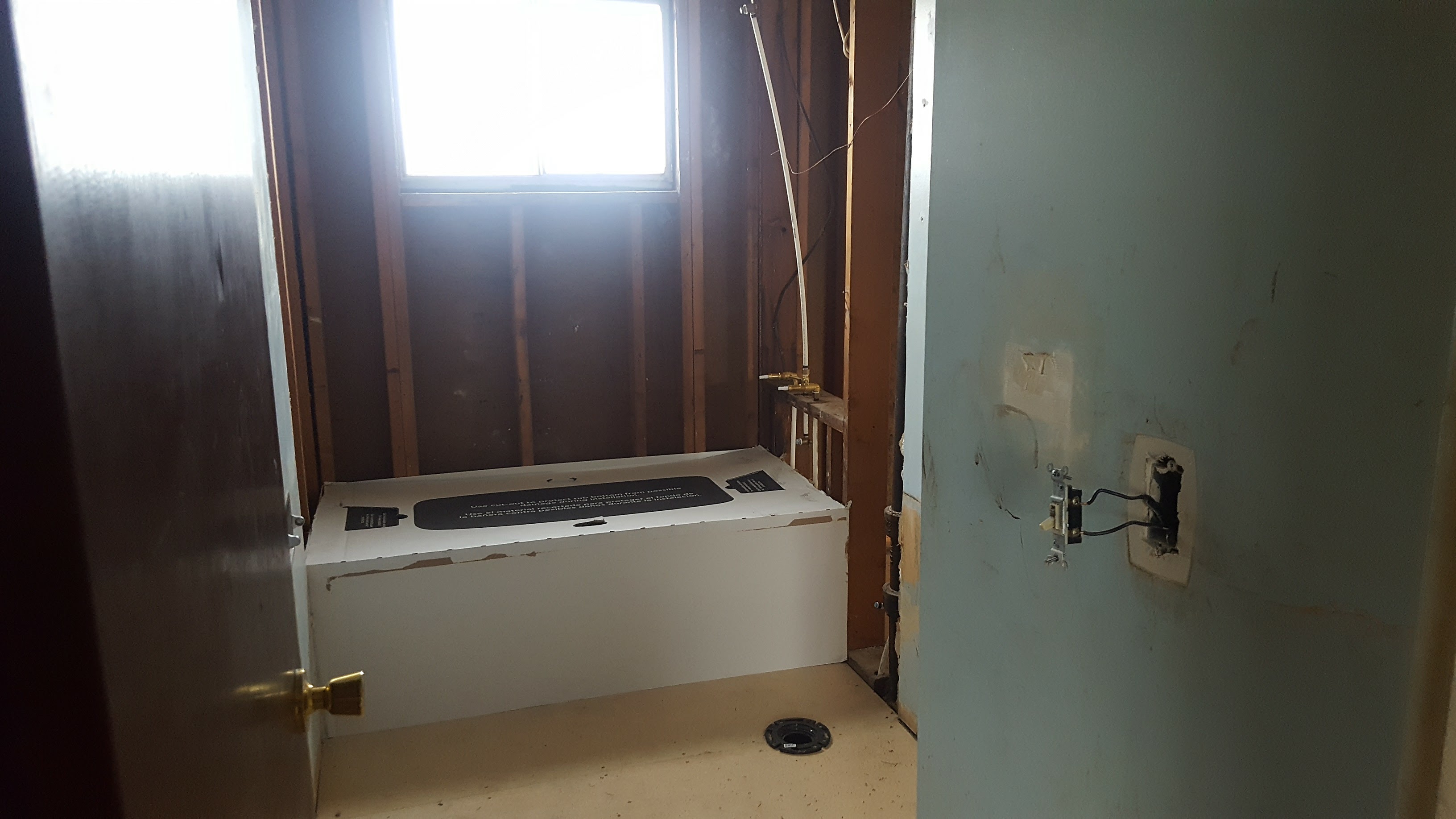 The bathroom has been stripped, the new tub has arrived and everything has been set up to ensure it fits correctly. The shower wall may get tiled, its still in design stages for the bathroom.