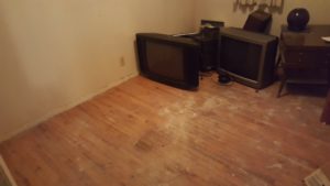 We have measured and began planning the new kitchen, we will be adding a dishwasher to it, so we are working on adjusting the layout for it. Under the living room carpet is the original hardwood, we will be inspecting it to see if we can refinish it and bring it back to its original beauty.